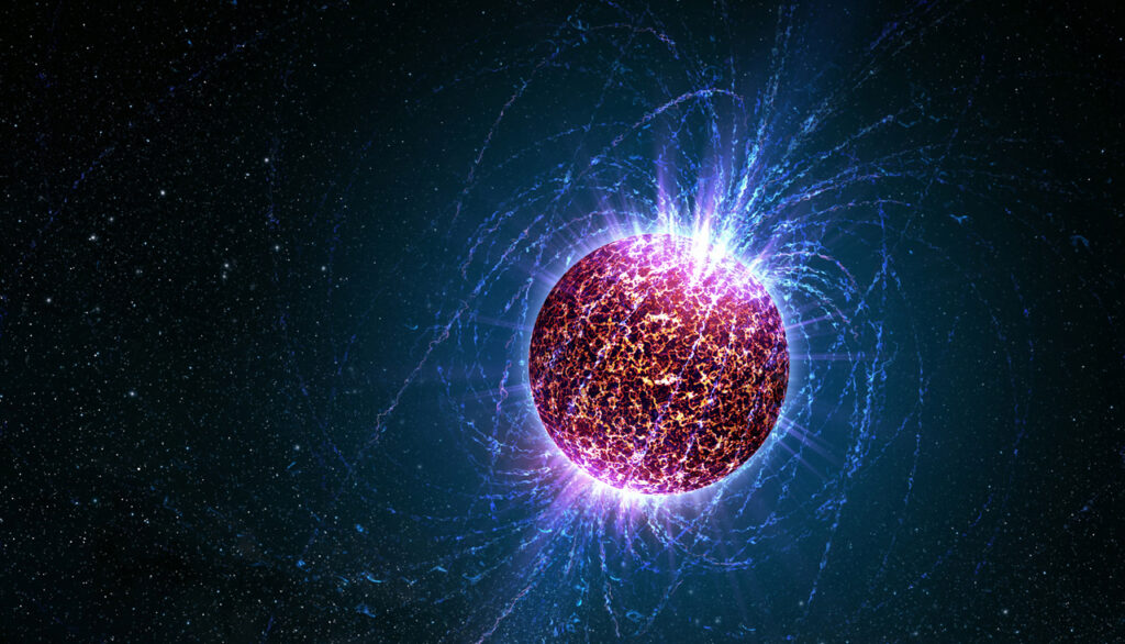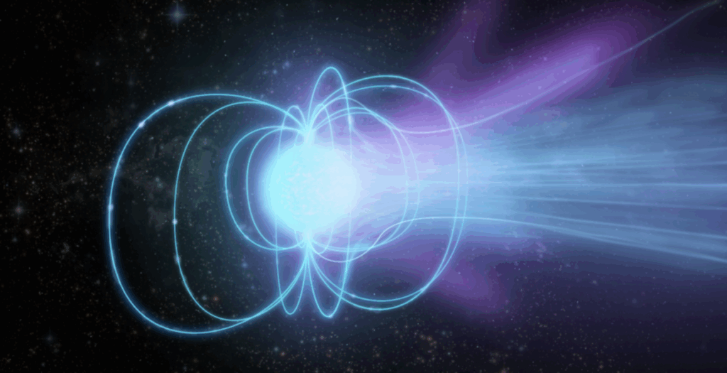 Zostały odkryte źródła stałych emisji w szybkich błyskach radiowych. Wizja artystyczna przedstawiająca magnetar otoczony bańką plazmy, odpowiedzialną za ciągłą