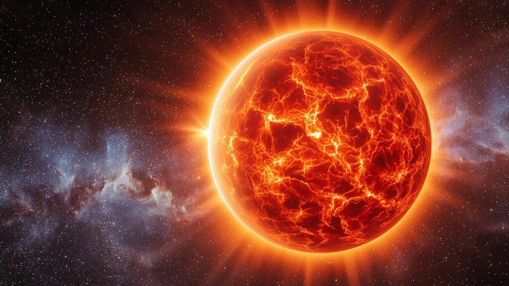 Zespół naukowców wykonał nowe pomiary magnetyczne β Hydri, gwiazdy analogicznej do przyszłego Słońca, aby ujawnić zaskakującą aktywność. Zdjęcie Słońca,
