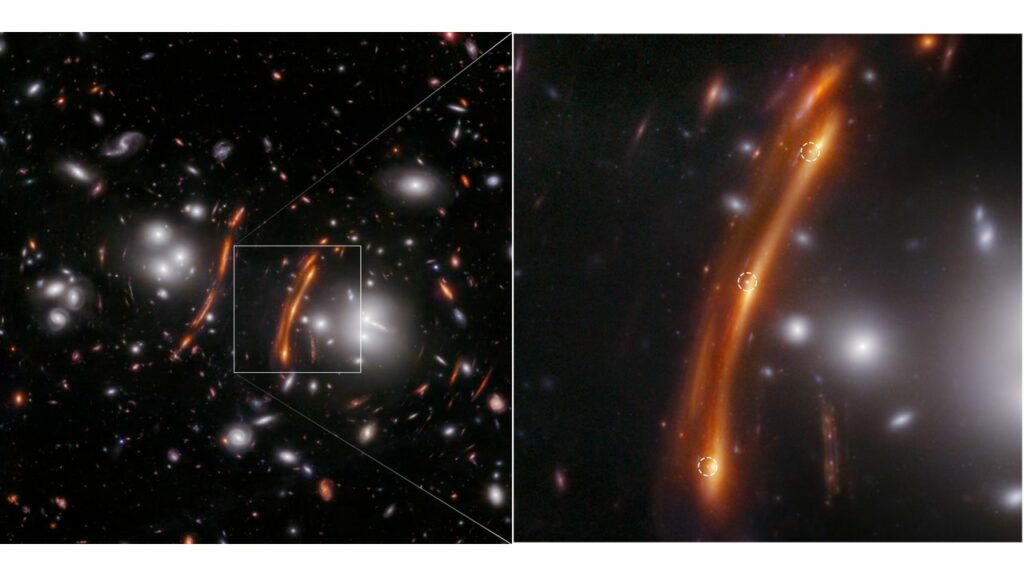 Obserwacje ALMA i JWST ujawniają nieoczekiwane szczegóły szybkiego wzrostu w słabej, nowo powstałej galaktyce przypominającej winogrono, podobnej do galaktyki we