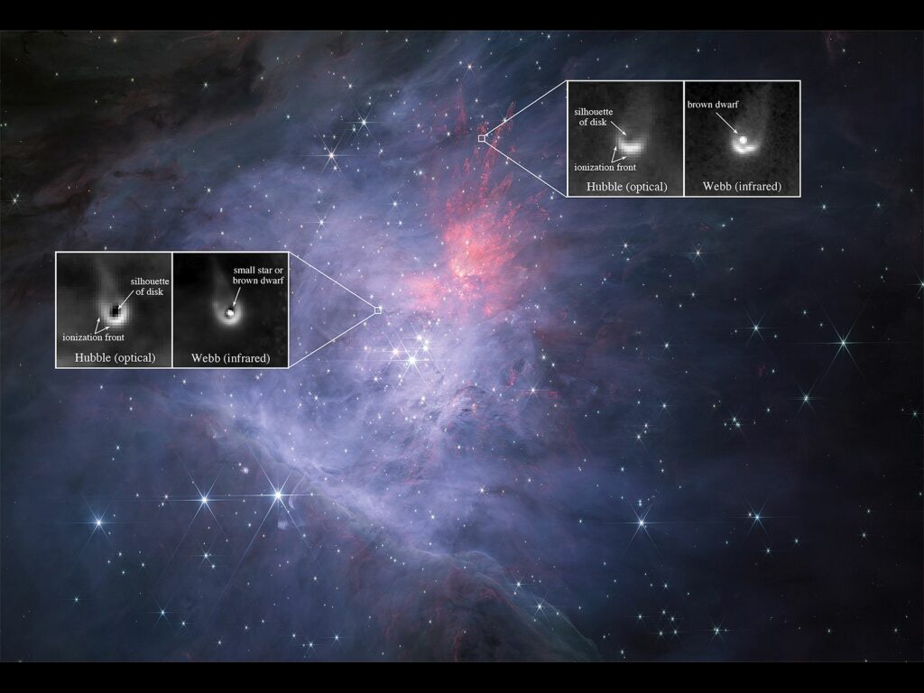 Korzystając ze spektrometru bliskiej podczerwieni Webba, naukowcy potwierdzili możliwość obecności dysków protoplanetarnych wokół brązowych karłów w Wielkiej Mgławicy w Orionie.