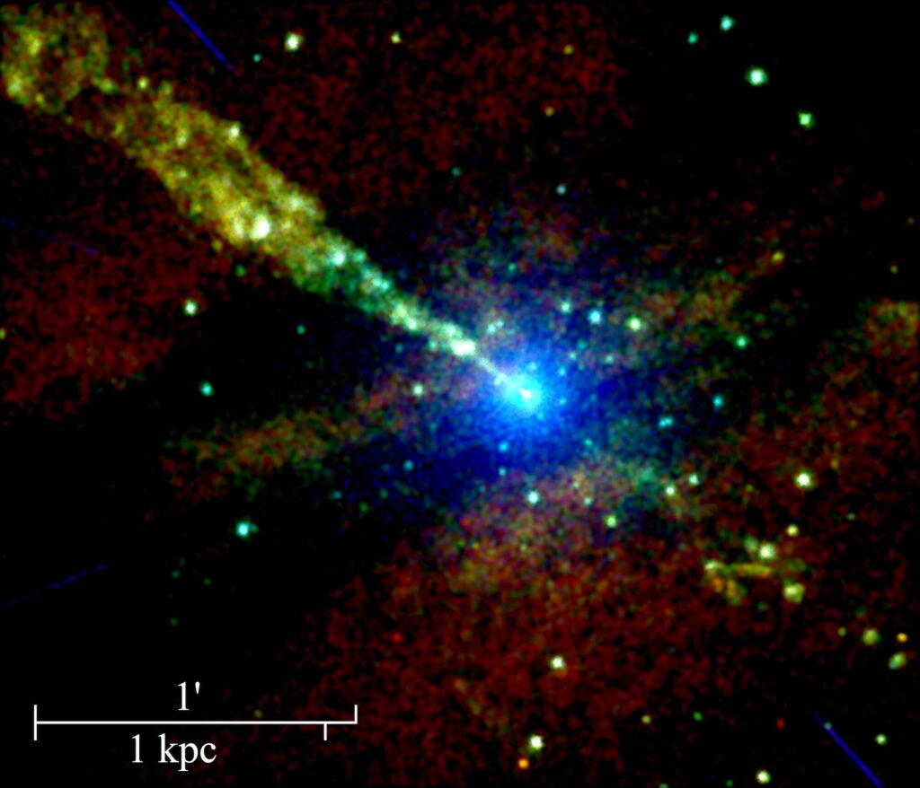 Korzystając z obserwatorium Chandra, astronomowie odkryli niezwykły ślad po potężnym strumieniu olbrzymiej czarnej dziury, który uderzył w niezidentyfikowany obiekt znajdujący