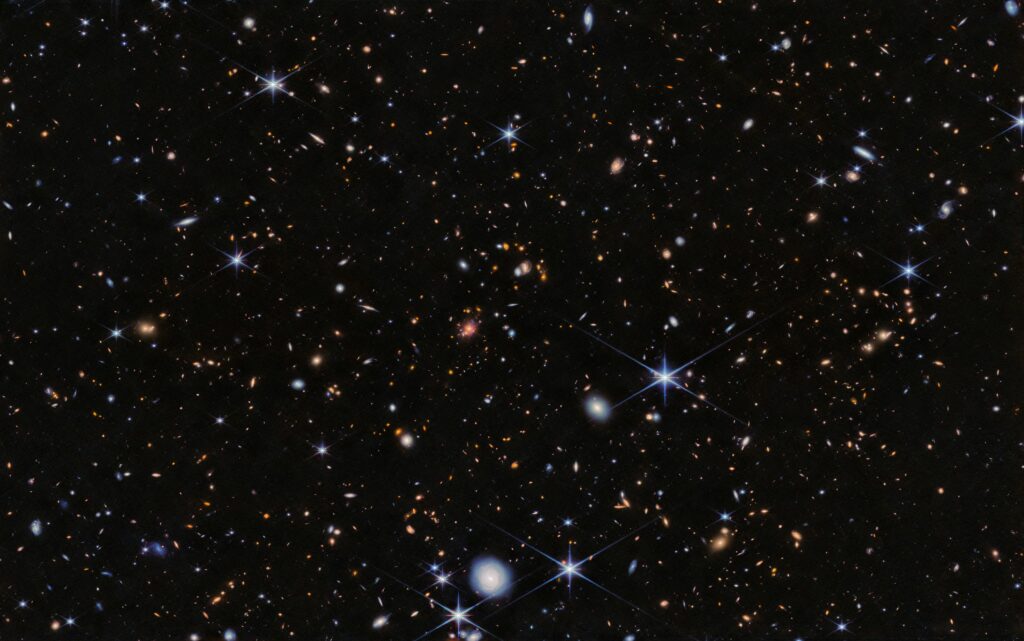 Astronomowie skierowali JWST do zbadania obrzeży Drogi Mlecznej, regionu nazywanego Ekstremalnie Zewnętrzną Galaktyką. Obraz Webba pokazuje gęste morze galaktyk