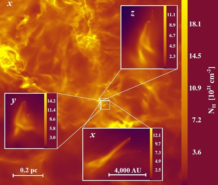 Najnowsze badania dostarczyły przekonujących dowodów na to, że zderzenie dwóch obłoków zapoczątkowało aktywny proces formowania się gwizd w obłoku molekularnym
