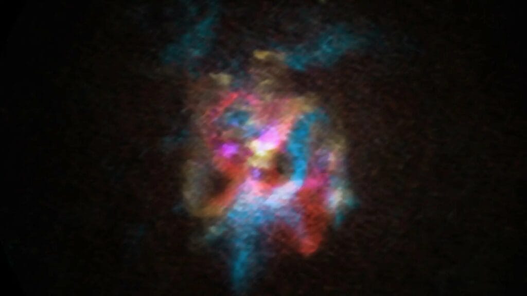 Nowe badania wskazują na najbardziej odległe wykrycie pierwiastka niezbędnego do powstania życia w regularnej galaktyce gwiazdotwórczej. Wizja artystyczna pokazująca kontinuum