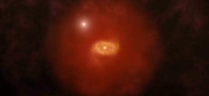 Międzynarodowy zespół astronomów ujawnił wysokiej rozdzielczości obraz dysków protoplanetarnych w ekstremalnym środowisku. Wizja artystyczna przedstawiająca proces formowania się planet